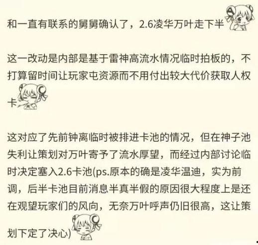 自从原神2.6版本的池子最新爆料曝光后,玩家们纷纷在各大论坛和社交媒体上热议。大家对这次池子的期待值爆表,纷纷表示要准备好原石,争取抽到心仪的角色和武器。更有玩家表示,这次池子将是他们原神生涯中的一次重要里程碑。